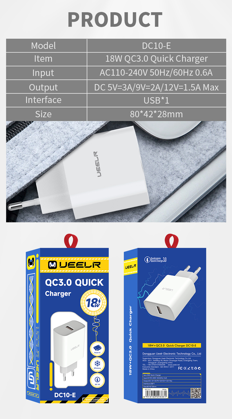 DC10-E 18W+QC3.0 Quick Charger