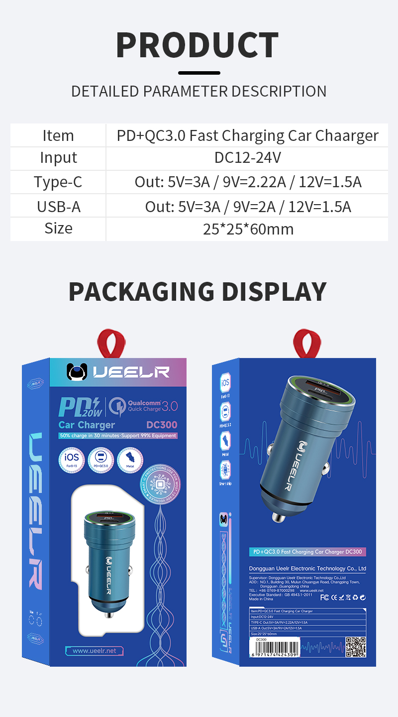 DC300 PD+QC3.0 Fast Charging Car Charger