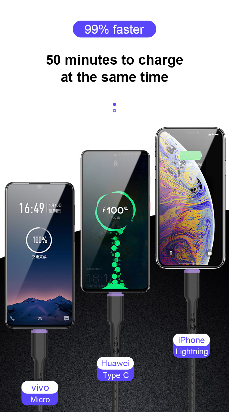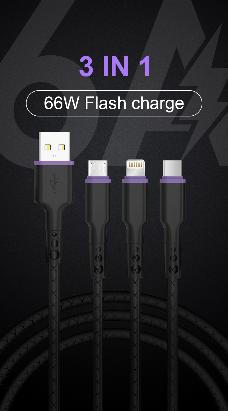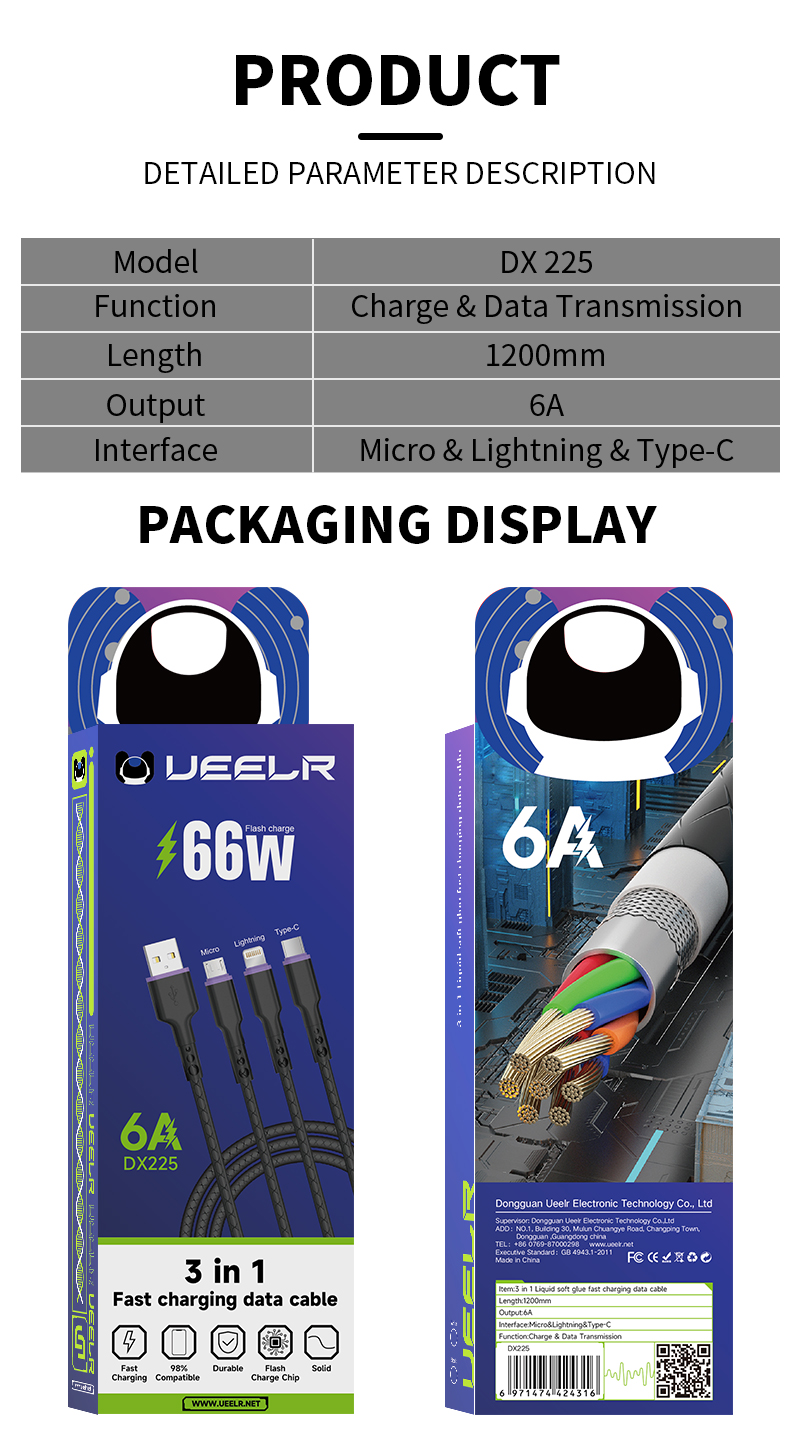 DX225 3 in 1 Liquid soft glue fast charging data cable