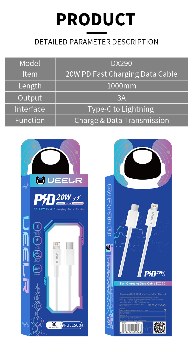 DX290 18W PD Fast Charging Data Cable 1M