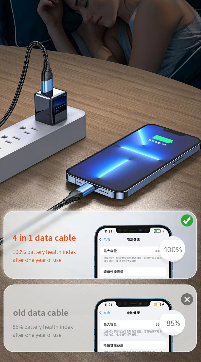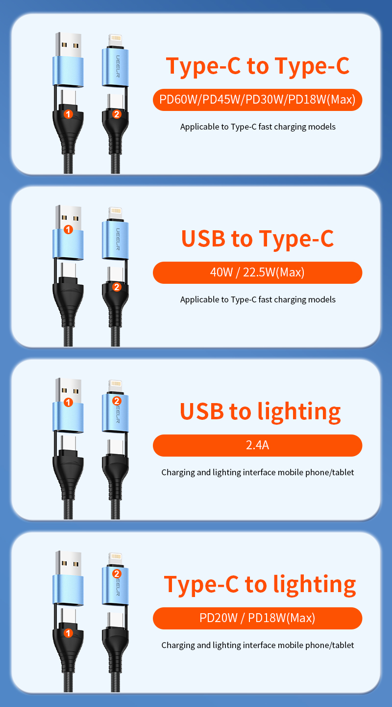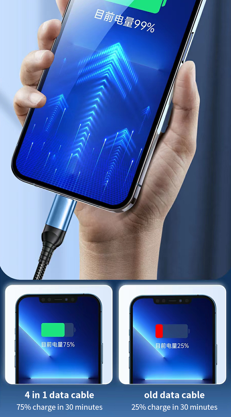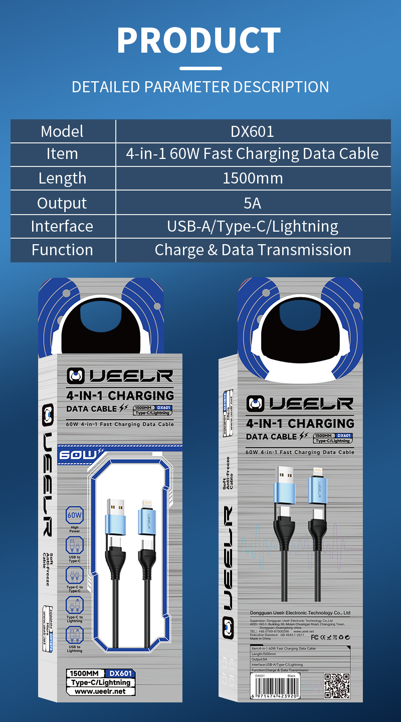 DX601 4-in-1 60W Fast Charging Data Cable 1.5M