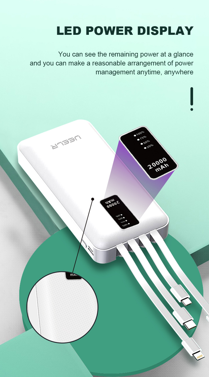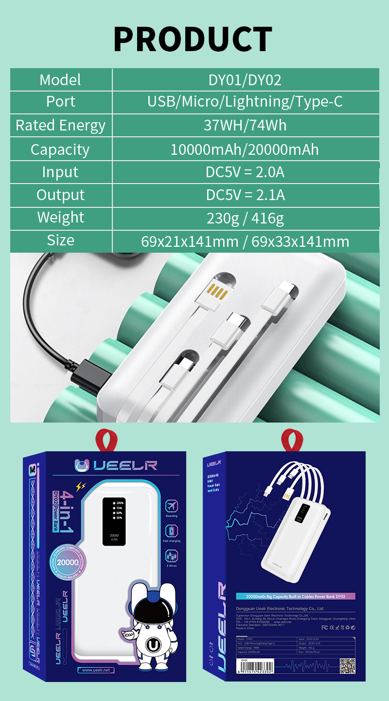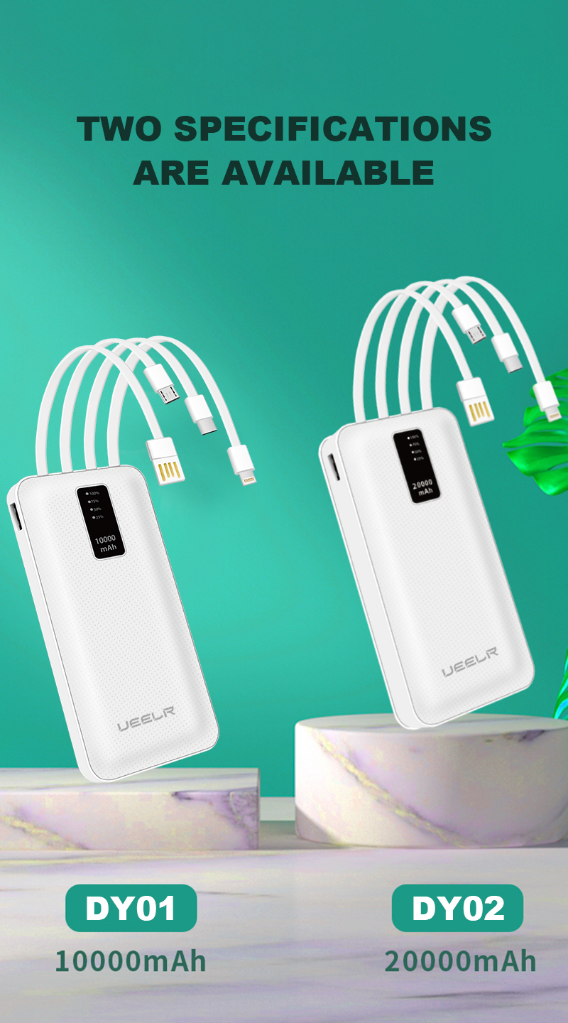 DY02 20000mAh Big Capacity Built in Cables Power Bank