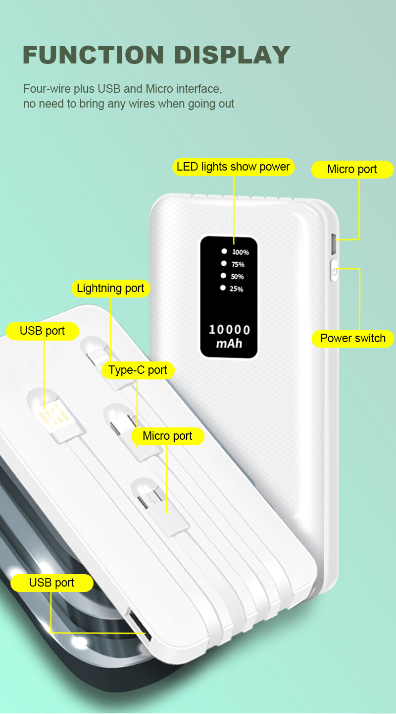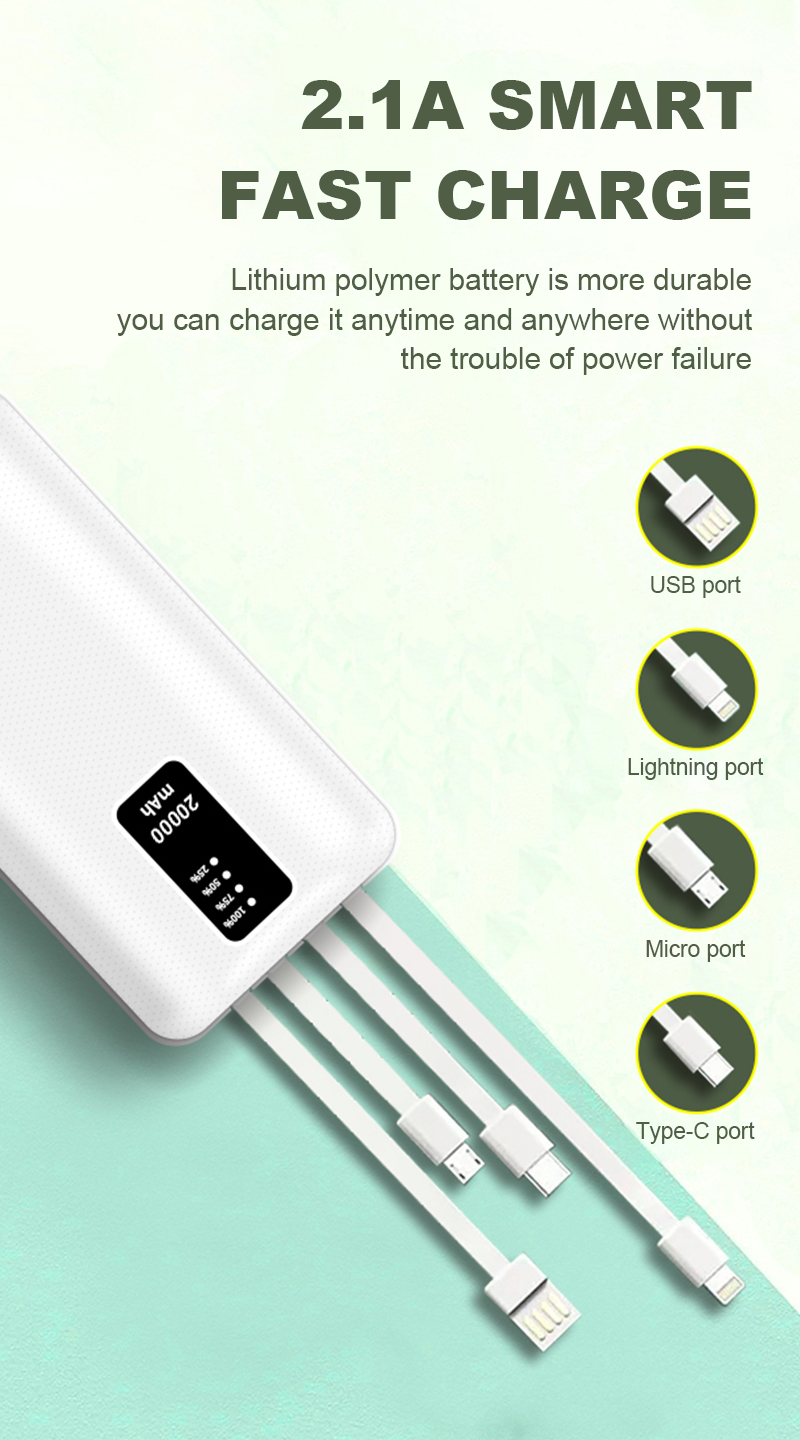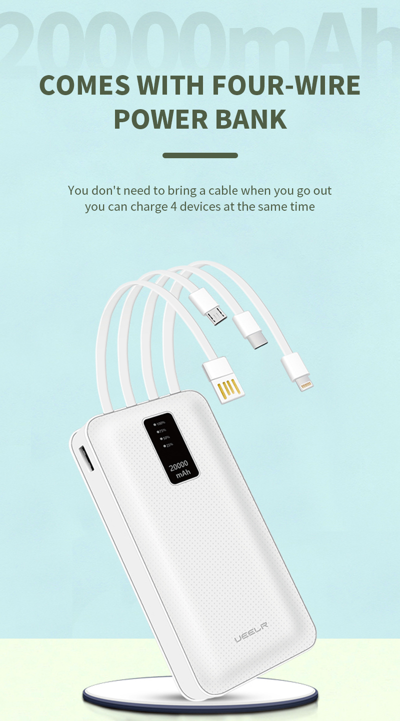 DY02 20000mAh Big Capacity Built in Cables Power Bank