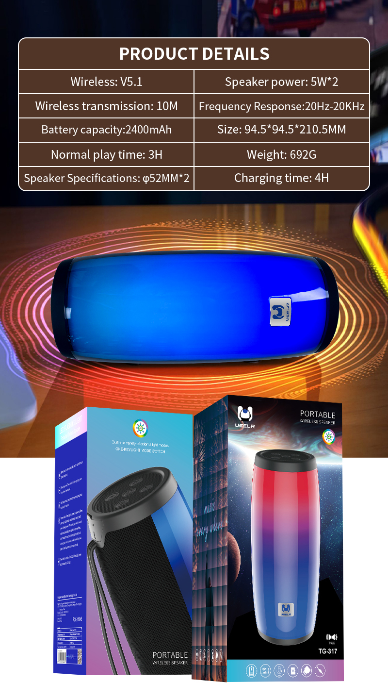 TG-317(DV10) Portable Wireless Speaker LED FLASHING LIGHT