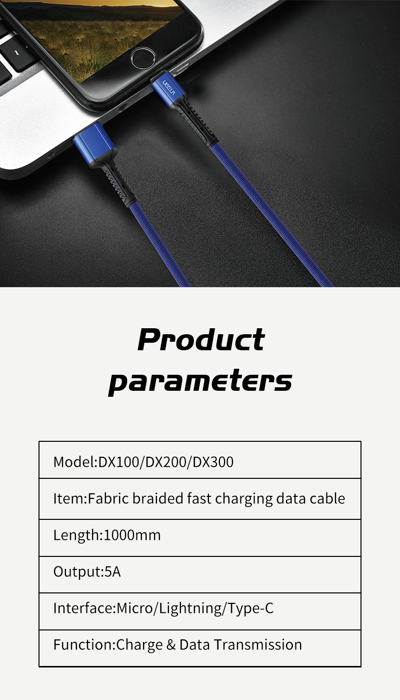 DX100 DX200 DX300 Fabric braided fast charging data cable
